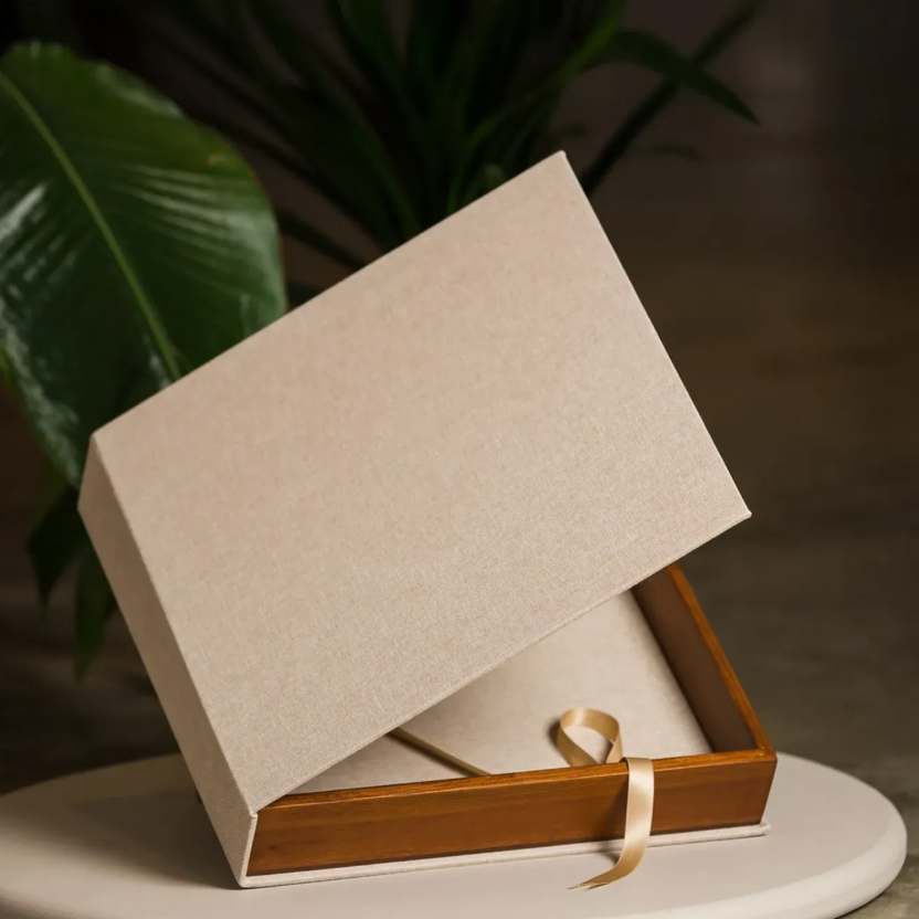 Linnen box met houten rand